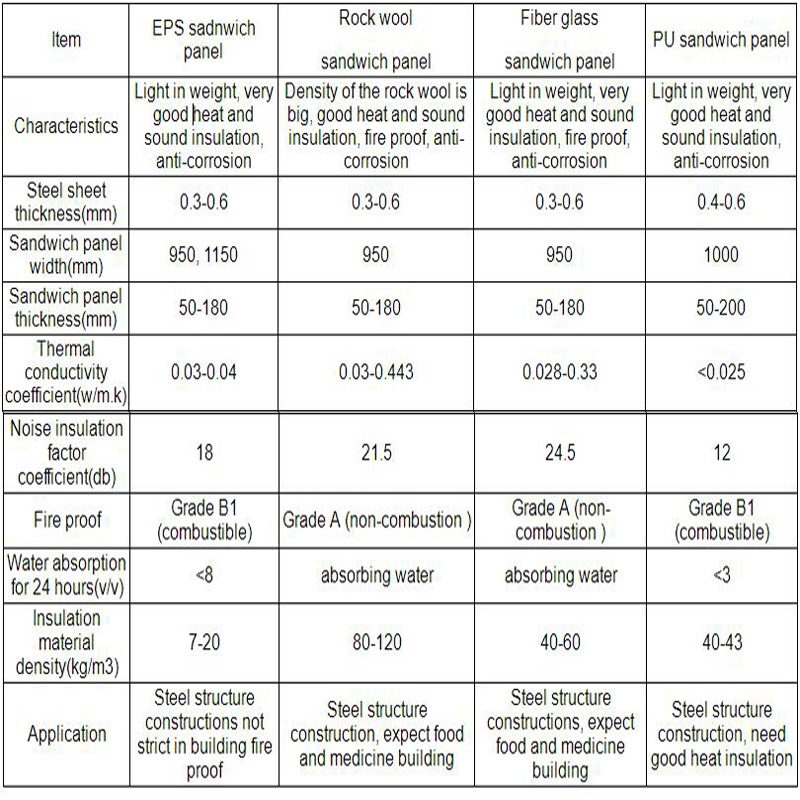 panel ,rock wool sandwich panel, fiber glass sandwich panel, polyurethane (PU) sandwich panel.