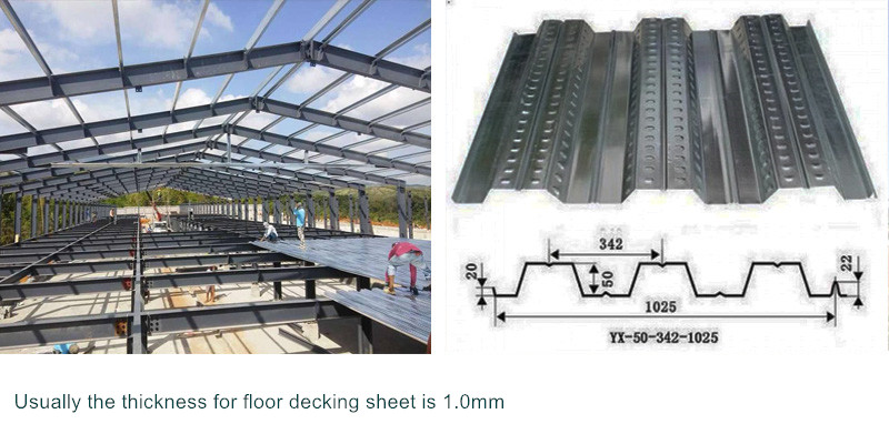 Floor decking is usually used as floor support sheet together with concrete.