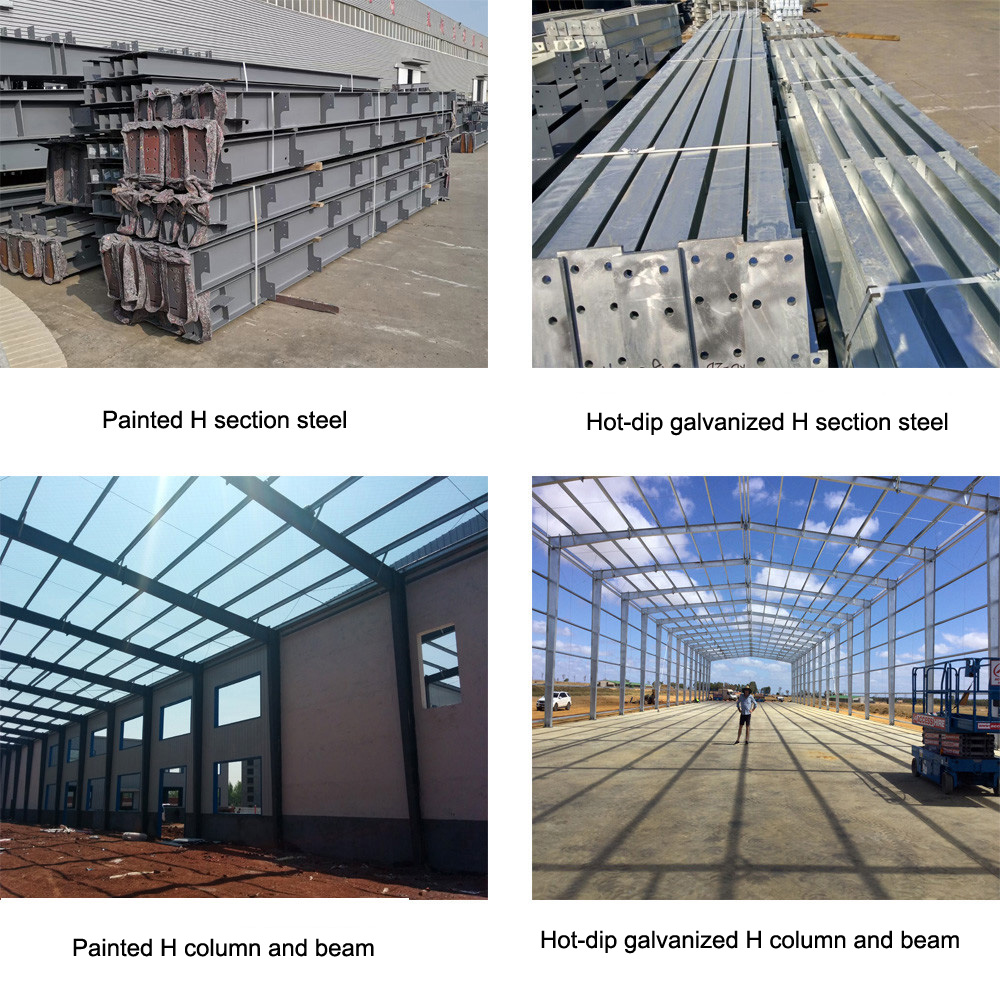 1. Main Steel Frame: The Columns And Beams Are Made Of Q355 Steel Or Q235 H Section Steel. The Secondary Structure Is Made Of Q235 Or Q355 Steel (Angle Steel, Round Steel, Steel Rod, Etc.)