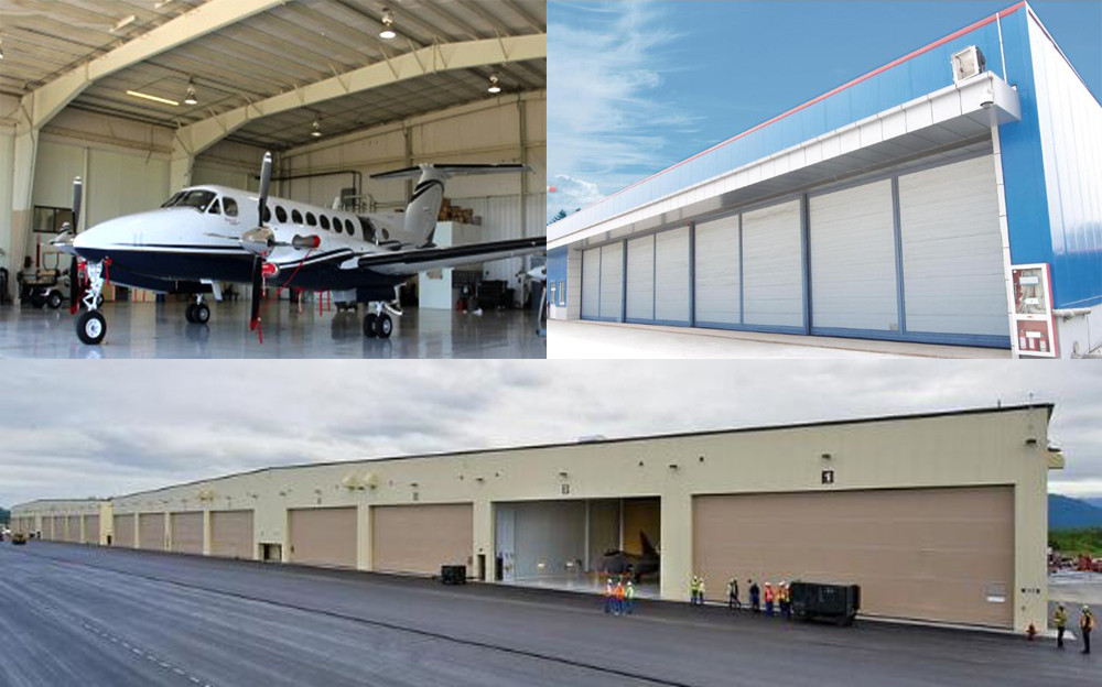 1. The hangar door is customized to meet the needs of various hangars. The opening method is generally overlapping one-way, or two-way sliding