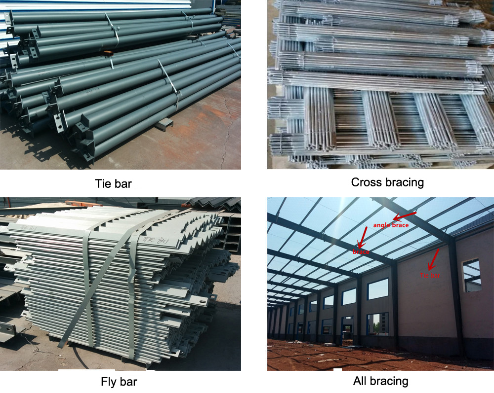 1. Main Steel Frame: The Columns And Beams Are Made Of Q355 Steel Or Q235 H Section Steel. The Secondary Structure Is Made Of Q235 Or Q355 Steel (Angle Steel, Round Steel, Steel Rod, Etc.)