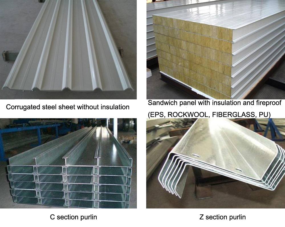Wall And Roof Have Two Types, Corrugated Steel Sheet And Sandwich Panel (EPS,ROCKWOOL, FIBERGLASS, PU, ).