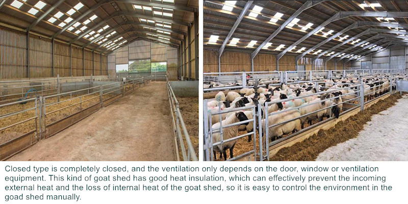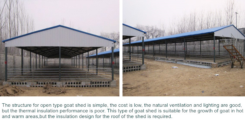 Usually there are three types of goat shed, including open type, semi-open type, and closed type goat shed.