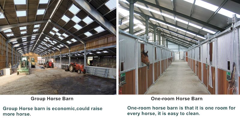 According To Feeding Way, There Are group horse Barn And one-room horse barns.